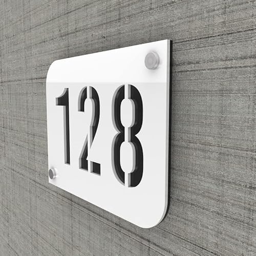 DECOHO - Plaque numéro de rue/maison blanc design avec fond...