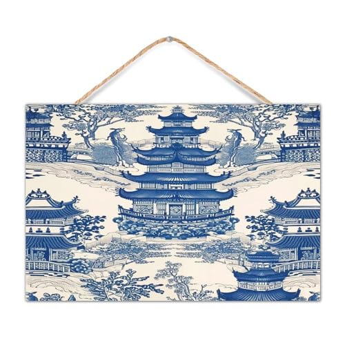 Chinoiserie Pagode Asiatique Blanc Bleu Panneau Chinoiserie...