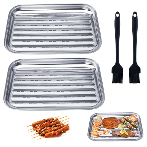 Plat Rôtir Acier Inoxydable, Lot 2 Barbecue Brosse Silicone,...