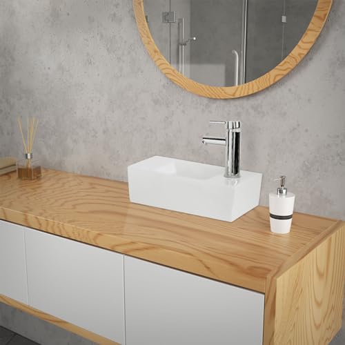 ML-Design Lavabo en Céramique, Blanc, Anguleux, 45x27x13 cm,...