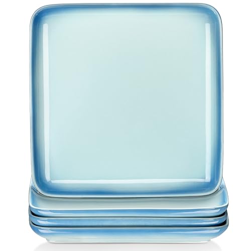 L'assiette plate en grès 4 pièces, carré 25.5 cm, dégradée b...