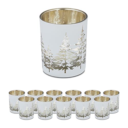 Lot : 12 verres à bougies avec motif forêt blanc-or - pour l...