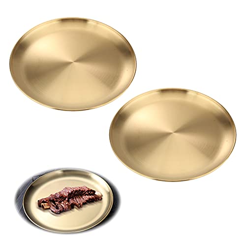 Plats Ronds Acier Inoxydable Doré Plat de Service et Camping
