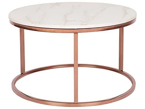 Basse Ronde Marbre Beige MDF Plat Effet Plateau Cuivré Belia...