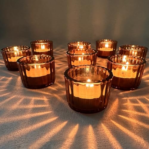EXLECO 24 x Photophore Bougie Marron Bougeoir en Verre, Phot...