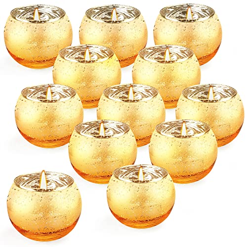 12PCS Bougeoirs Votifs Or Porte-Bougie Plat Doré