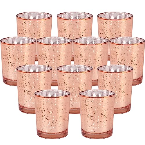 Lot de 12 photophores en verre tacheté en or rose - Bougeoir...