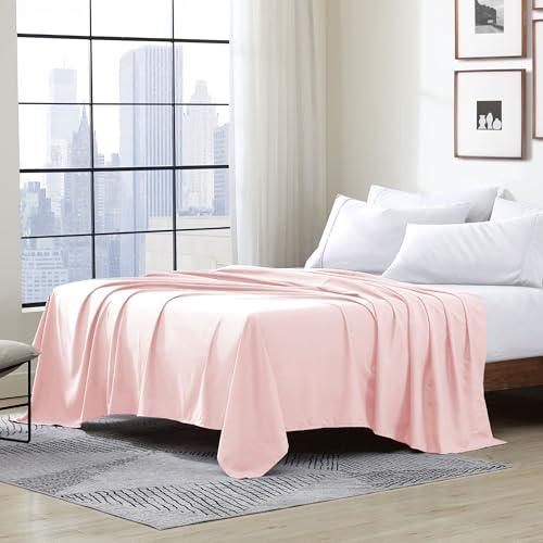 Drap plat luxe microfibre rose poudré simple résistant plis...