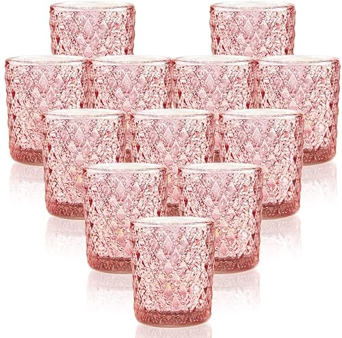Qucover Lot de 12 Bougeoir Photophore en Verre Rose, Bougies...