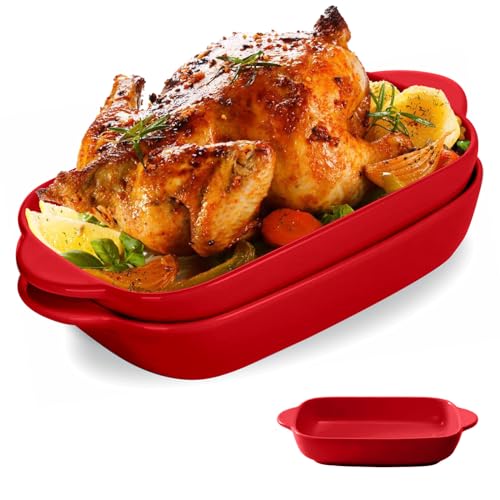 Relaxdays Lot de 3 Plats à Four en céramique; Plat à Lasagne...