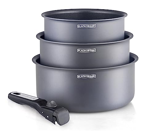 BLACKplusDECKER Batterie Cuisine 3 casseroles Gris mat Amovi...