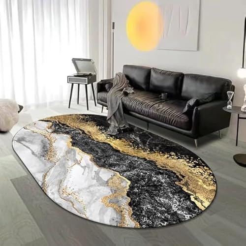 Tapeti doux antidérapant lavable ovale noir blanc doré