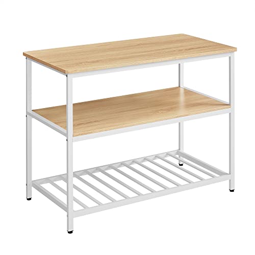 Vasagle Islot de Cuisine, Grand Plan, Étagère 3N, Acier, Chê...