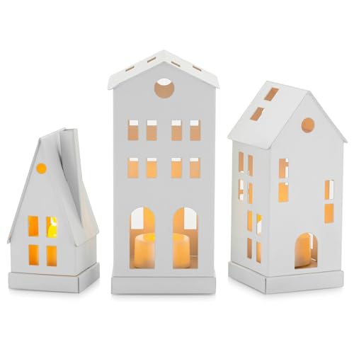 Romadedi Lot de 3 Maison Lumineuse en Métal: Maison de Noel...