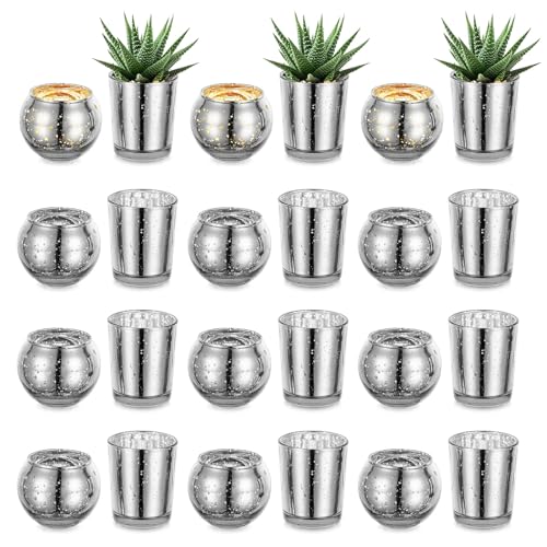 Romadedi Lot de 24 photophores en verre argenté - Décoration...