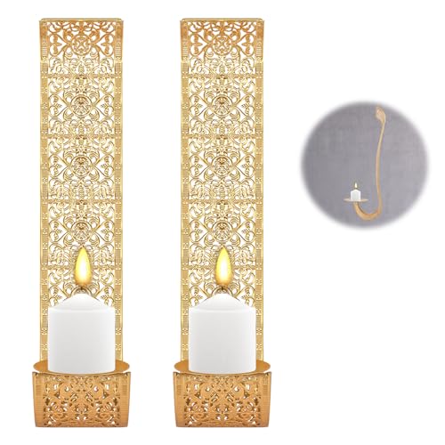 Lot de 2 bougeoirs muraux vintage dorés - 38 x 13 cm - Suppo...