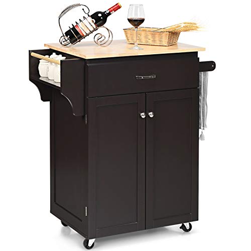 Desserte de Cuisine sur Roulettes, Plateau Bois d'Hévéa, Cha...