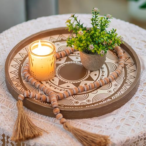 Plateaux et Plateaux Bois Décoratifs Ronds Boho Plats Cafe