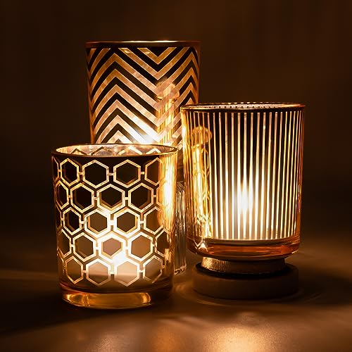 Toptime Bougeoir Verre, 3 Pièces Photophore Verre Doré, Boug...