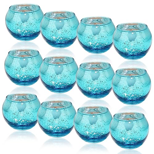 12 Pcs Photophore Verre Rond 5x5,5cm, Bougeoir Doré Rose Ble...