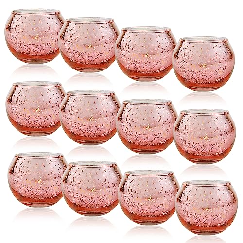 12 Pcs Photophore Verre Rond 5x5,5cm, Bougeoir Doré Rose Ble...