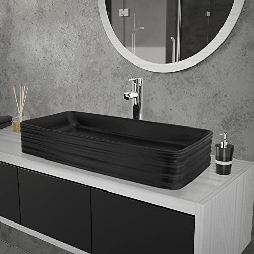 ML-Design Lavabo en Céramique Noir Mat, 68 x 38 x 12 cm, Rec...