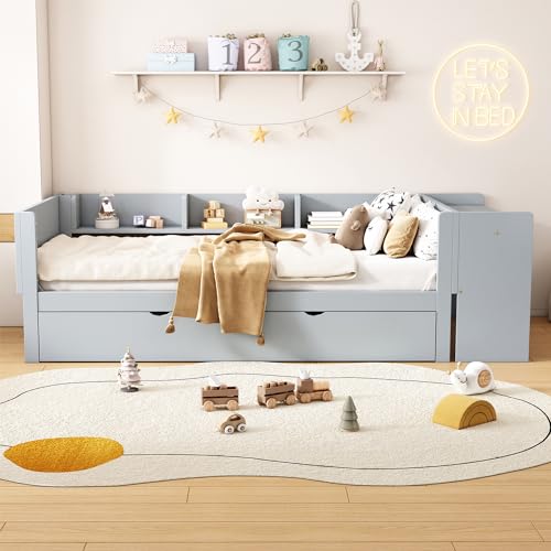 AiSyllxl Lit plat, 90 x 200 cm, avec lit extensible, excelle...