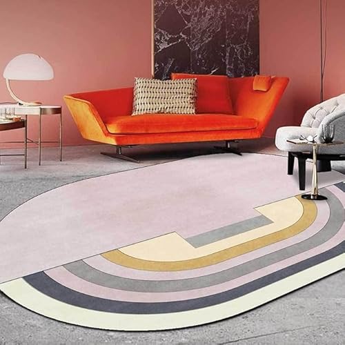 Tapis ovale moderne rose luxe antidérapant salon moelleux