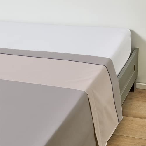 Drap Plat 2 personnes 240 x 300 CM Bicolore Gris / Beige