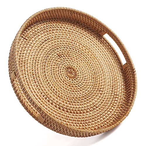 IGNPION Plateau de service rond en rotin tissé de 24,5 cm -...