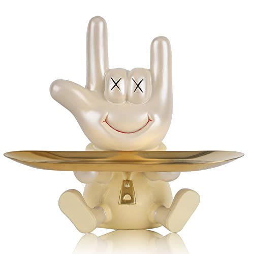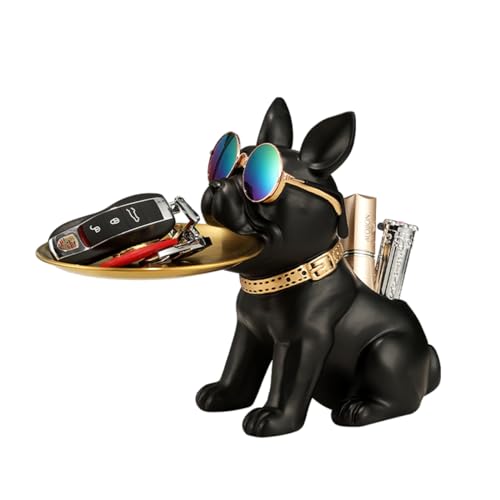 Kityemo Statue de Bouledogue Noir en Résine avec Plateau de...
