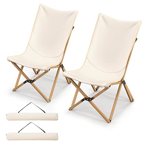 Giantex 2 Chaise Longue en Bois Portable avec Rangement