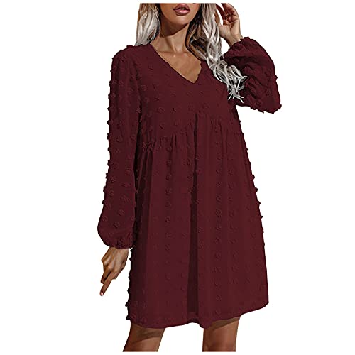 Fhouulye robe courte élégante en rouge fluide pour femme aut...