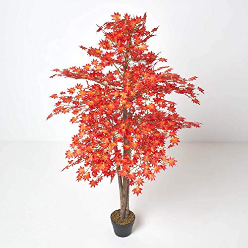 HOMESCAPES érable rouge artificiel très feuilli en pot 160 c...