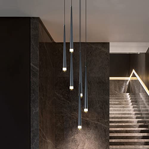 KOHKA Lustre Escalier Noir, Grand Salon, Longue Lampe LED