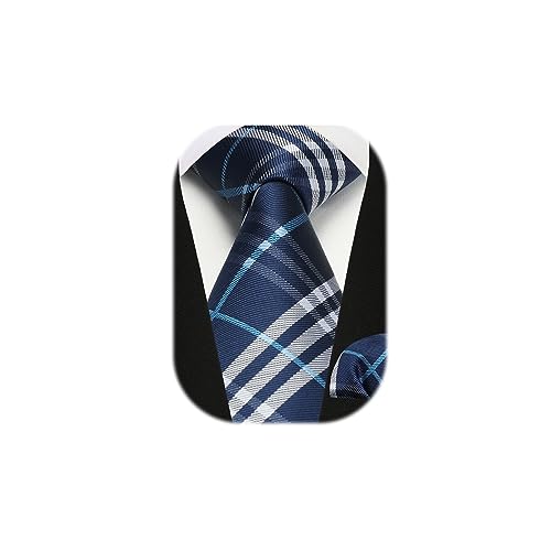 Cravate Bleu clair Élégante Mariage Cravate Pochette Plaid E...
