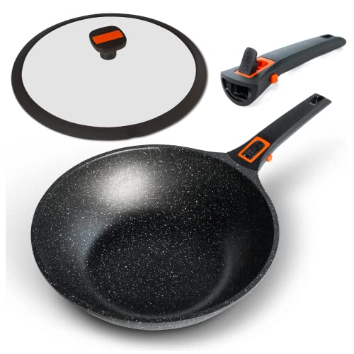 Pep Wok anti-adhésif, couvercle amovible, poignée amovible,...