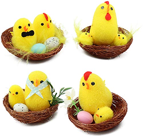 com-four® 4X Nid de Pâques Nature avec Poule et Poussin - dé...