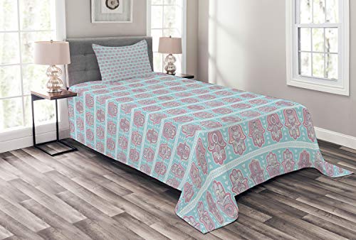 Oriental Couvre-Lit Multicolor Bleu pâle, Mehndi Mandala Lav...
