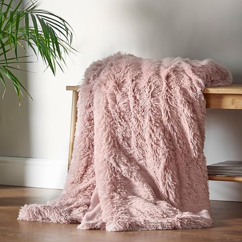 Catherine Lansfield Plaid à Poils Longs Rose pâle 150 x 200...