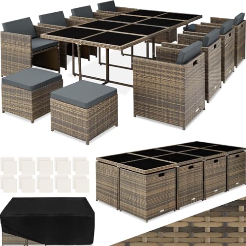 Salon Jardin Extérieur TecTake Poly Rotin Aluminium 12 Perso...
