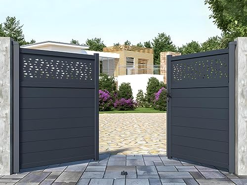 Portail battant aluminium semi ajouré à motifs - L305 x H182...