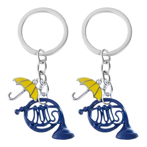 2 Pièces Porte-clés Émail Corne Bleue Pendentif