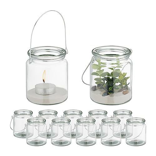 Relaxdays Photophore en Verre, Lot de 12, Porte-Bougie avec...
