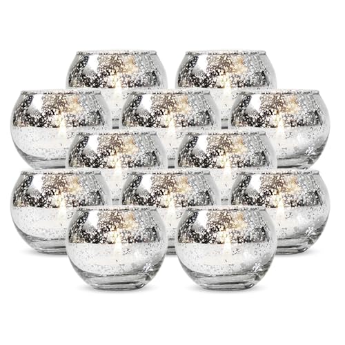 12 Pièces Porte-Bougie Votif Rond en Mercure - Fait de Verre...