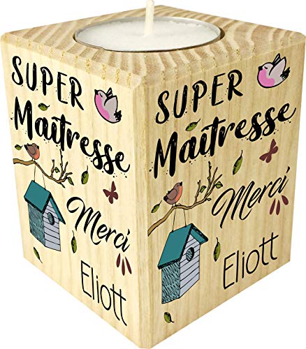 Bougie personnalisée Maîtresse – Porte Bougie Bois