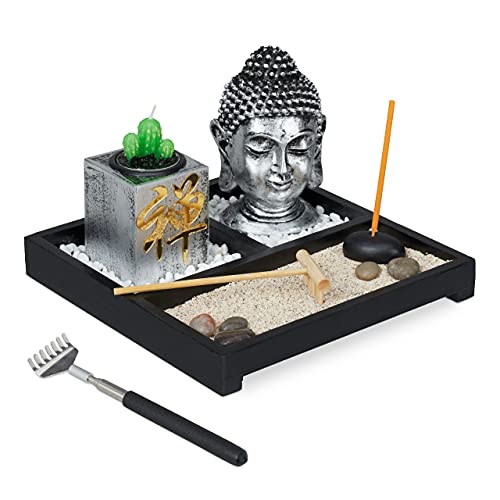 Relaxdays Jardin Zen, avec Bouddha, Pierres, Sable, tiges d’...