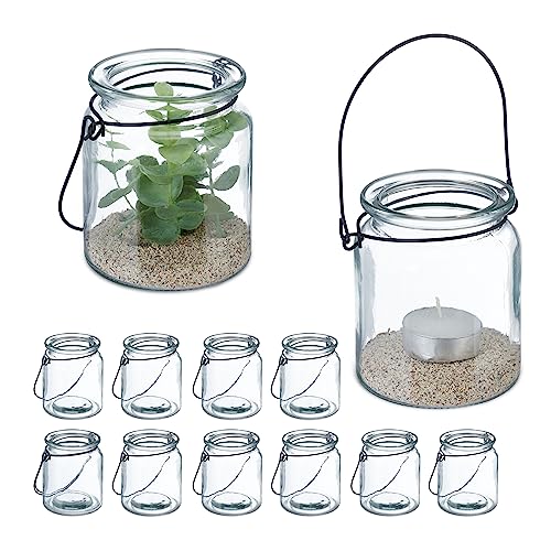 Relaxdays Photophore en Verre, Lot de 12, Porte-Bougie avec...