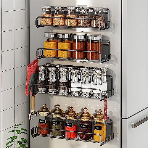 Trhillsbrad Lot de 4 étagères à épices magnétiques noires po...