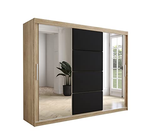 Megar Armoire à portes coulissantes 3 tiroirs miroir